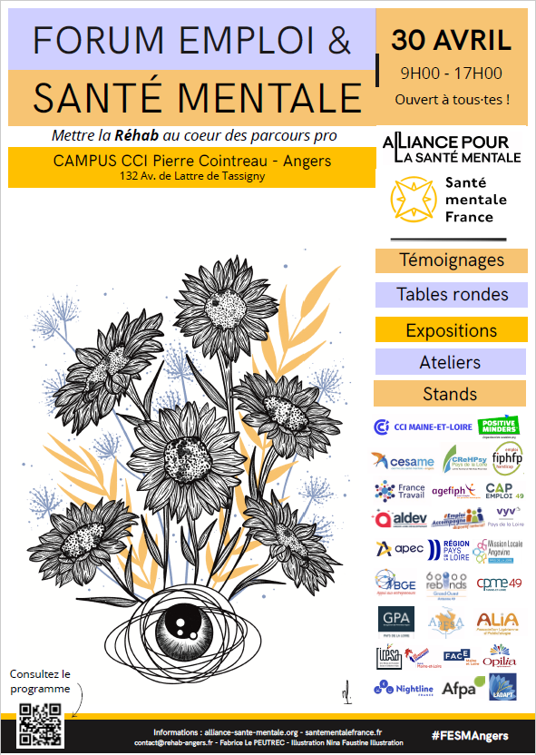 Cet évènement est organisé par l’Alliance pour la Santé Mentale, Santé Mentale France, et Fabrice Le Peutrec de PositiveMinders et réunira de nombreux acteurs locaux et régionaux de l’emploi et de la santé mentale.